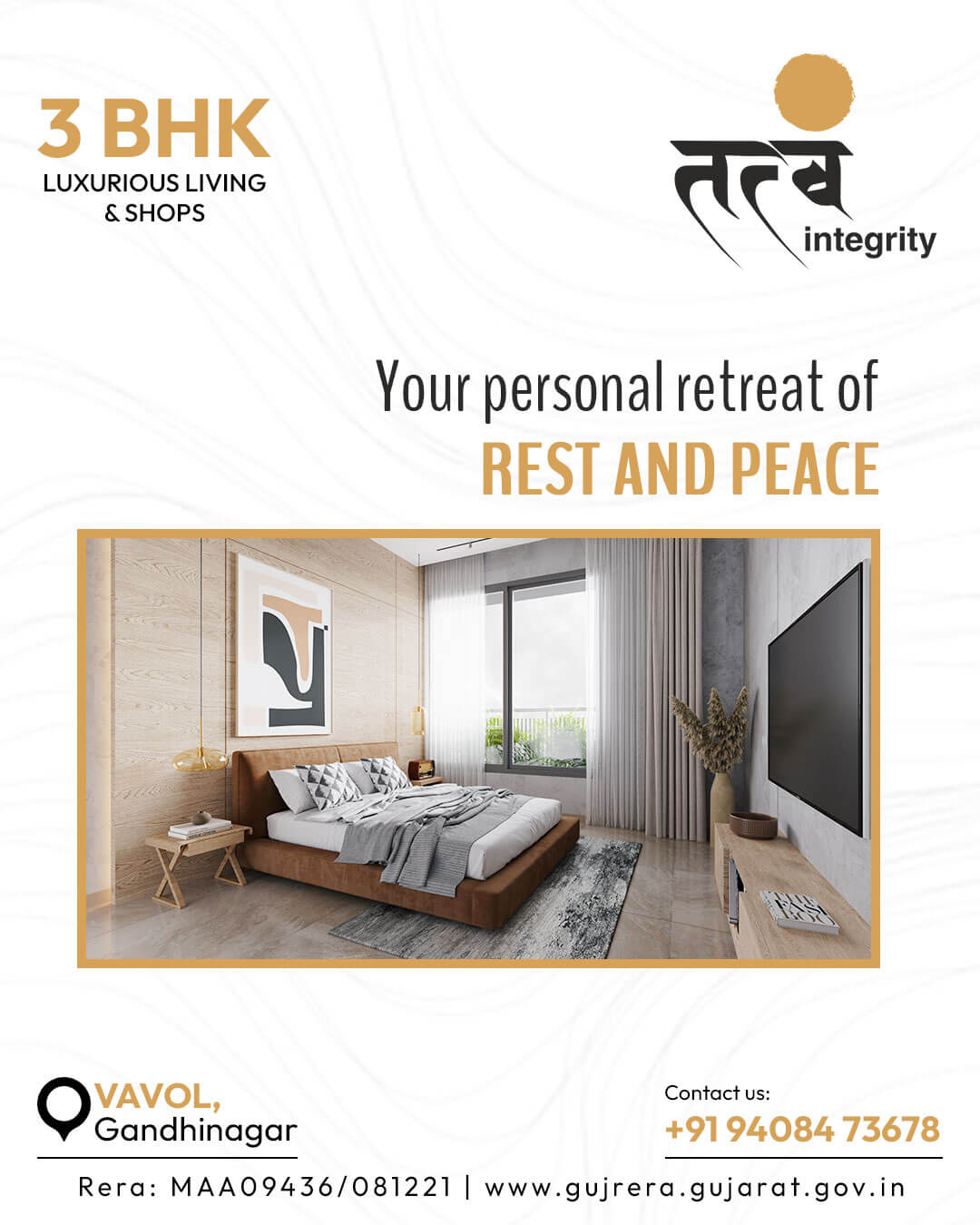 Discover premium 3 BHK Flats in Vavol Gandhinagar, offering modern design, spacious layouts, and exceptional connectivity. Enjoy a lifestyle filled with comfort, safety, and top-class amenities. Perfect for families seeking luxury living in a peaceful yet prime location. Book your dream home today